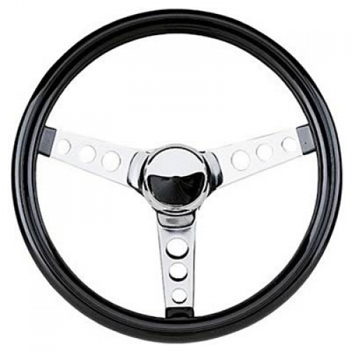 Grant Classic ratt. 12-1/2" (317 mm) diameter. 3" (76 mm) djup. Tre hålade ekrar i kromat stål. Rattkrans i svart skummaterial. Monteringssats tillkommer.